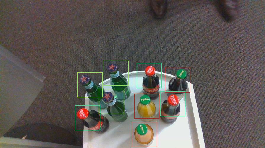 I employed a single shot multi-box detector to localise snacks and drinks in monocular snapshots. The same single forward pass also computed the boxes class. Regularisation and data augmentation were important due to tagging costs. For robotise
