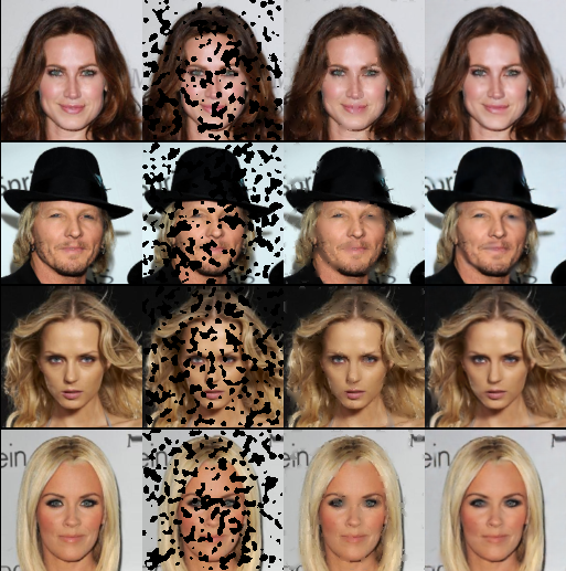 To prepare for another potential project I've used the CelebA dataset to train a deep neural network to reconstruct missing pixels. I'm assuming the detection of these missing pixels has already happened.